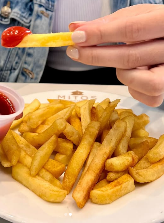 Falafel vegetariano crocante, acompañado de papas a la francesa doradas, ensalada fresca de la casa con vinagreta y bebida tradicional de guandolo.