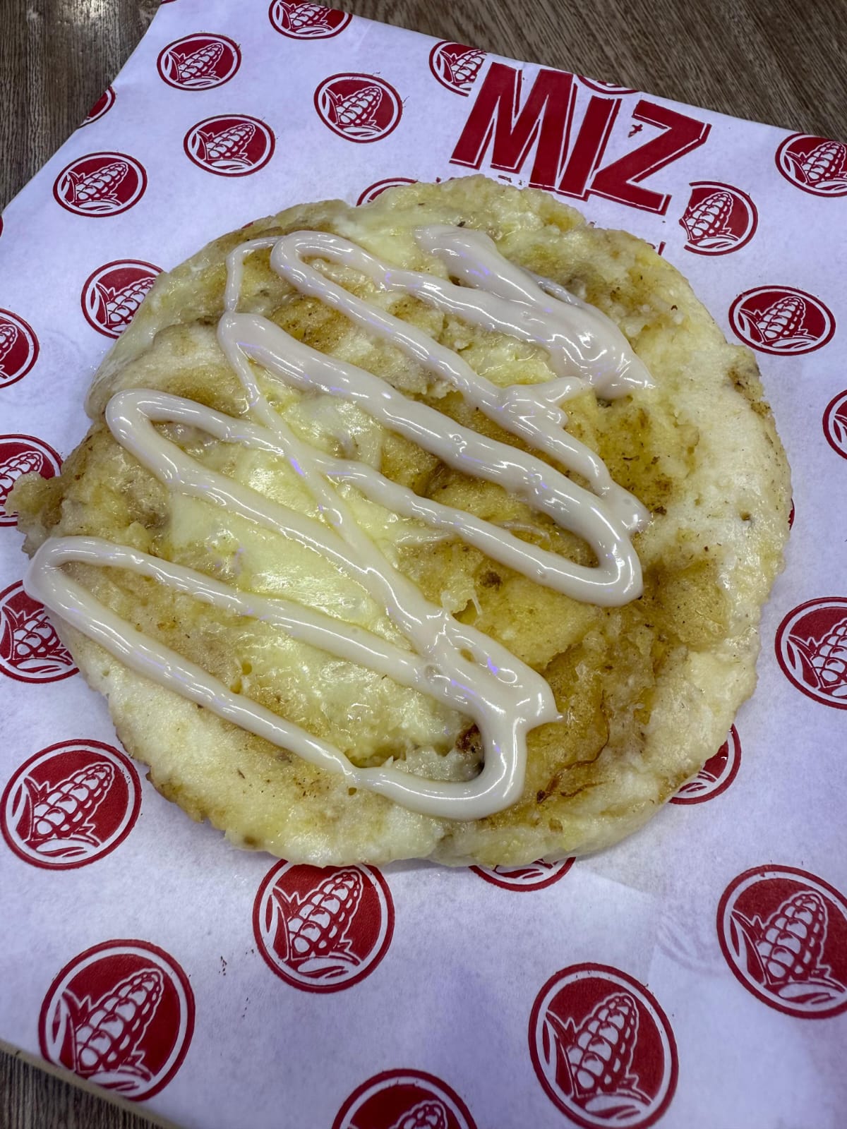 Arepa de queso, rellena de queso mozzarella y lecherita.