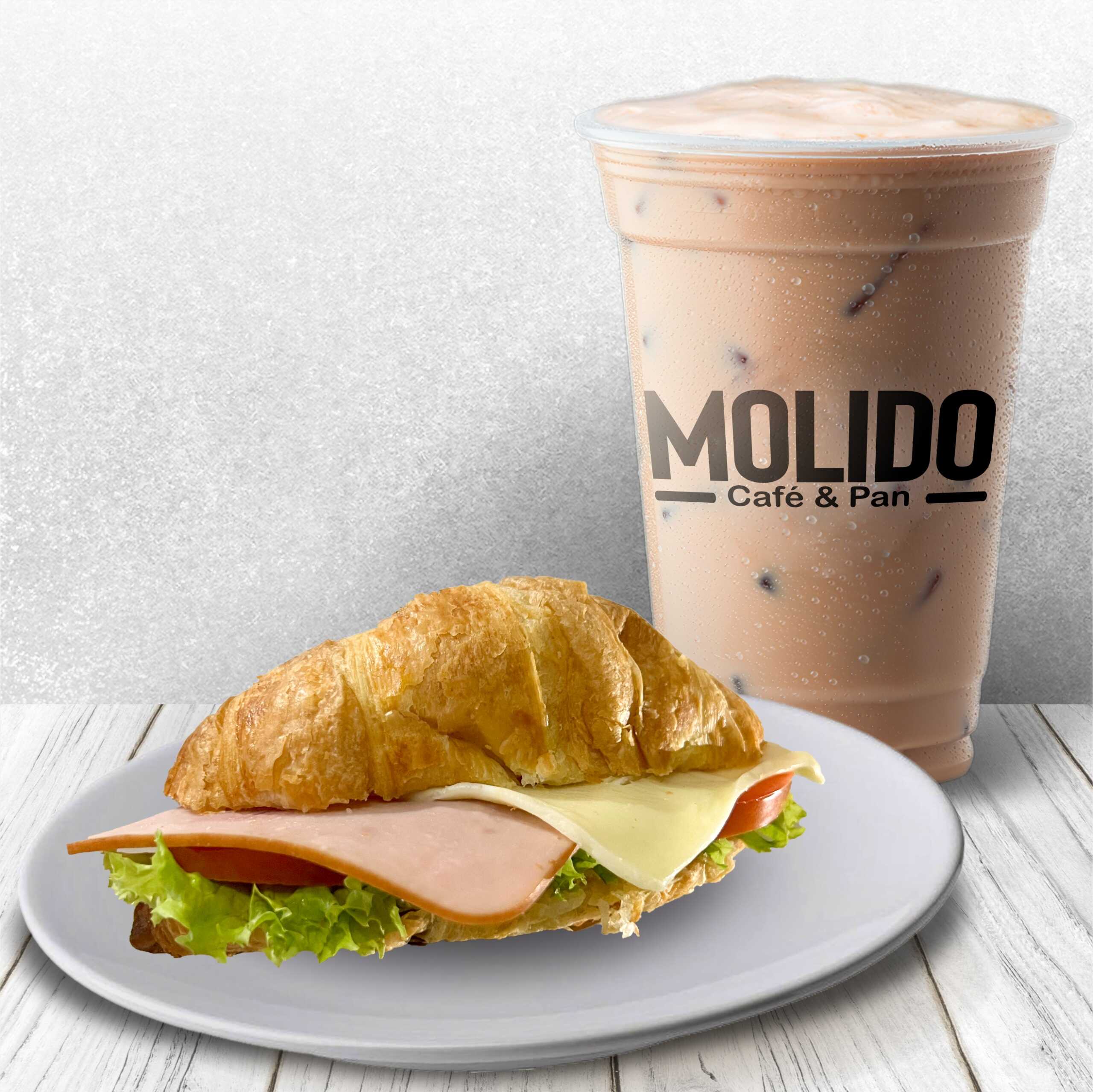 Pan, lechuga, tomate, queso y jamón. + Granizado de café de 16 oz