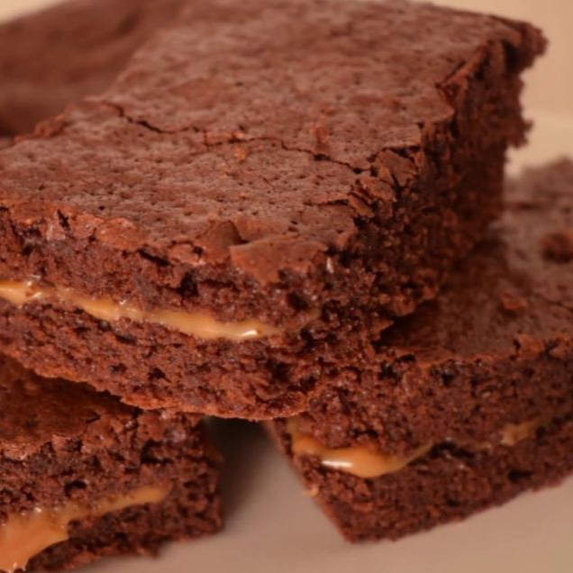 Brownie melcochudo de chocolate relleno de arequipe