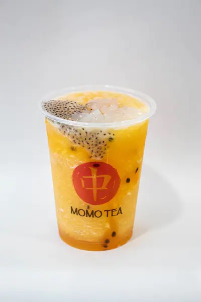 Deliciosa combinacion de mango con maracuyá en crema vegetal.