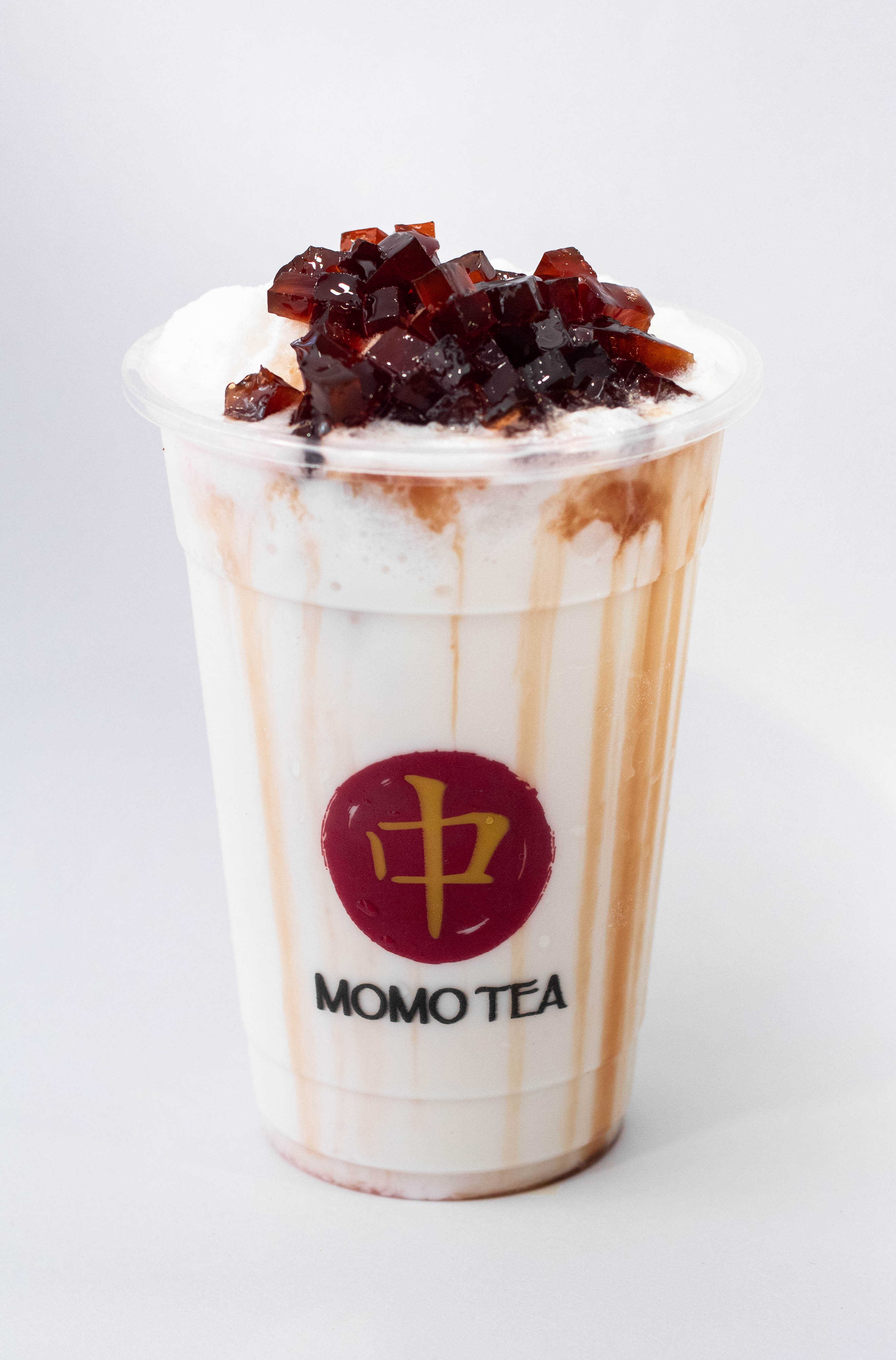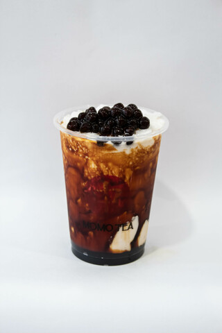 Mezcla de miel con jengibre en té negro, hecho con crema vegetal.