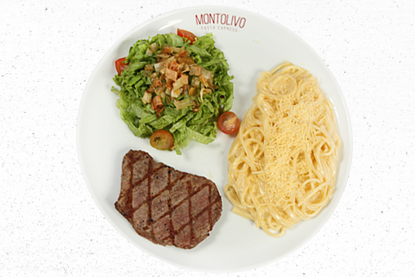 Arma tu plato a tu gusto en 3 simples pasos (proteína, complemento y ensalada).