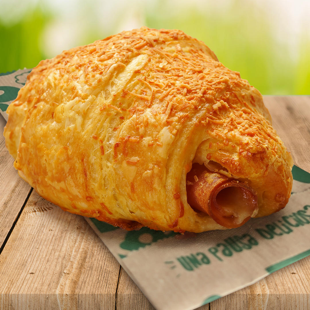 Un verdadero croissant al mejor estilo francés, crocante y hojaldrado, relleno de jamón y queso mozzarella.