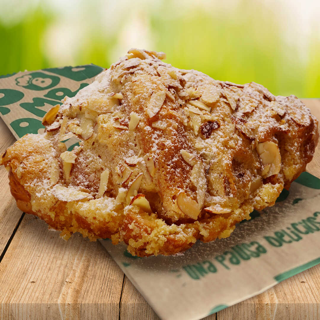 Un clásico francés, croissant relleno de crema de almendras con almendras trozadas.