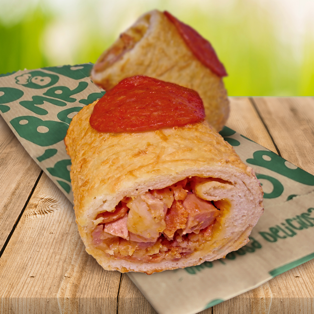 Rollos de deliciosa masa crocante, rellenos de salchicha, tocineta, queso mozzarella y salsa pomodoro, decorado con pepperoni.