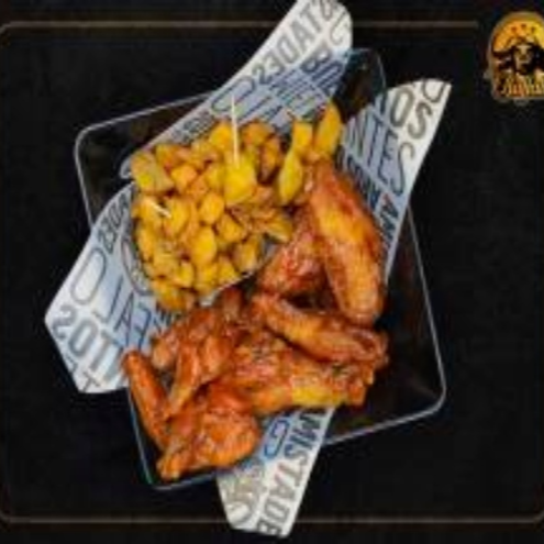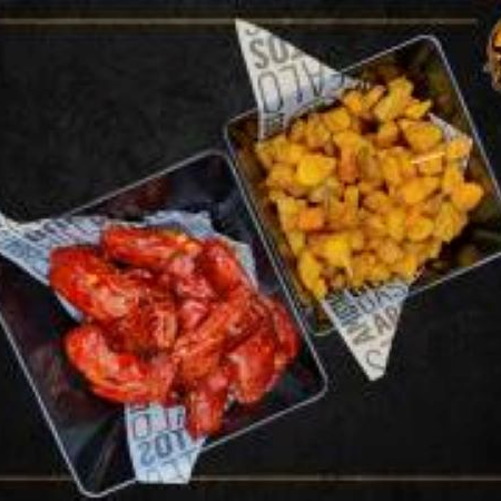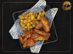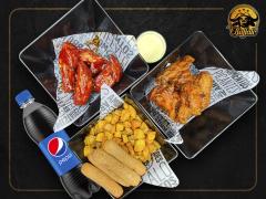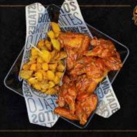 6 Alitas en 2 salsas de tu elección, 280 g de costillas, 4 deditos de queso, papas en casco, dip de queso y 1 gaseosa de 400 ml gratis.