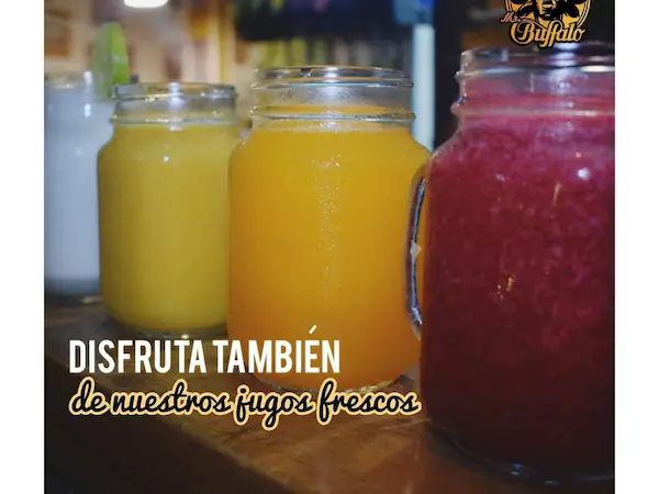 Alitas 12 piezas, porción de papa, 3 salsas de tu elección, más 2 jugos naturales del mismo sabor.