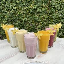 Batido de fruta natural preparado con leche para una textura más cremosa.