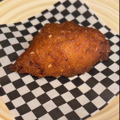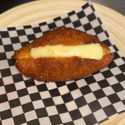 Buñuelo especial relleno de queso mozzarella fundido.