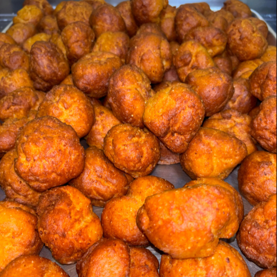 Buñuelo tradicional de la región, de textura externa crocante y centro esponjoso.
