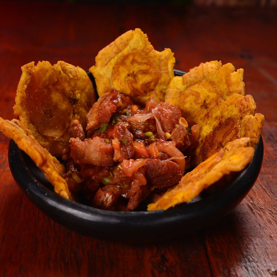 Delicioso ceviche de chicharrón acompañado de patacones
