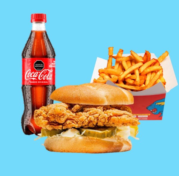 Sandwich de crispy chicken o nashville hot chicken + papas + bebida a elección.