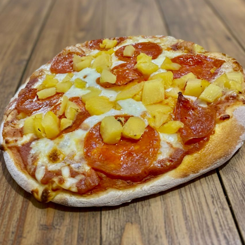 MASA ARTESANAL-SALSA NAPOLITANA-DOBLE QUESO-PEPPERONI-PIÑA