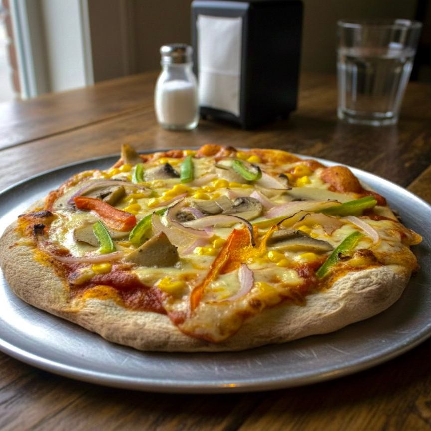 MASA ARTESANAL VEGETARIANA-DOBLE QUESO-PIMENTON-CEBOLLA-MAIZ-CHAMPIÑONES