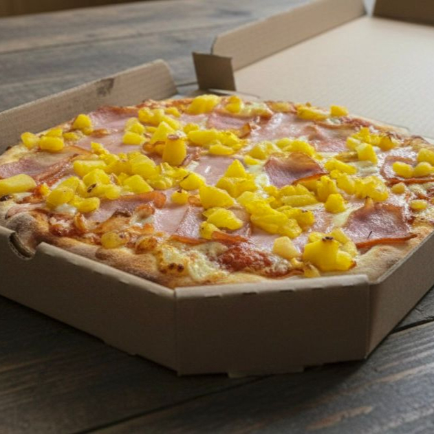MASA ARTESANAL-SALSA DE PIÑA-TRIPLE QUESO-JAMON-PIÑA EN TROZO
