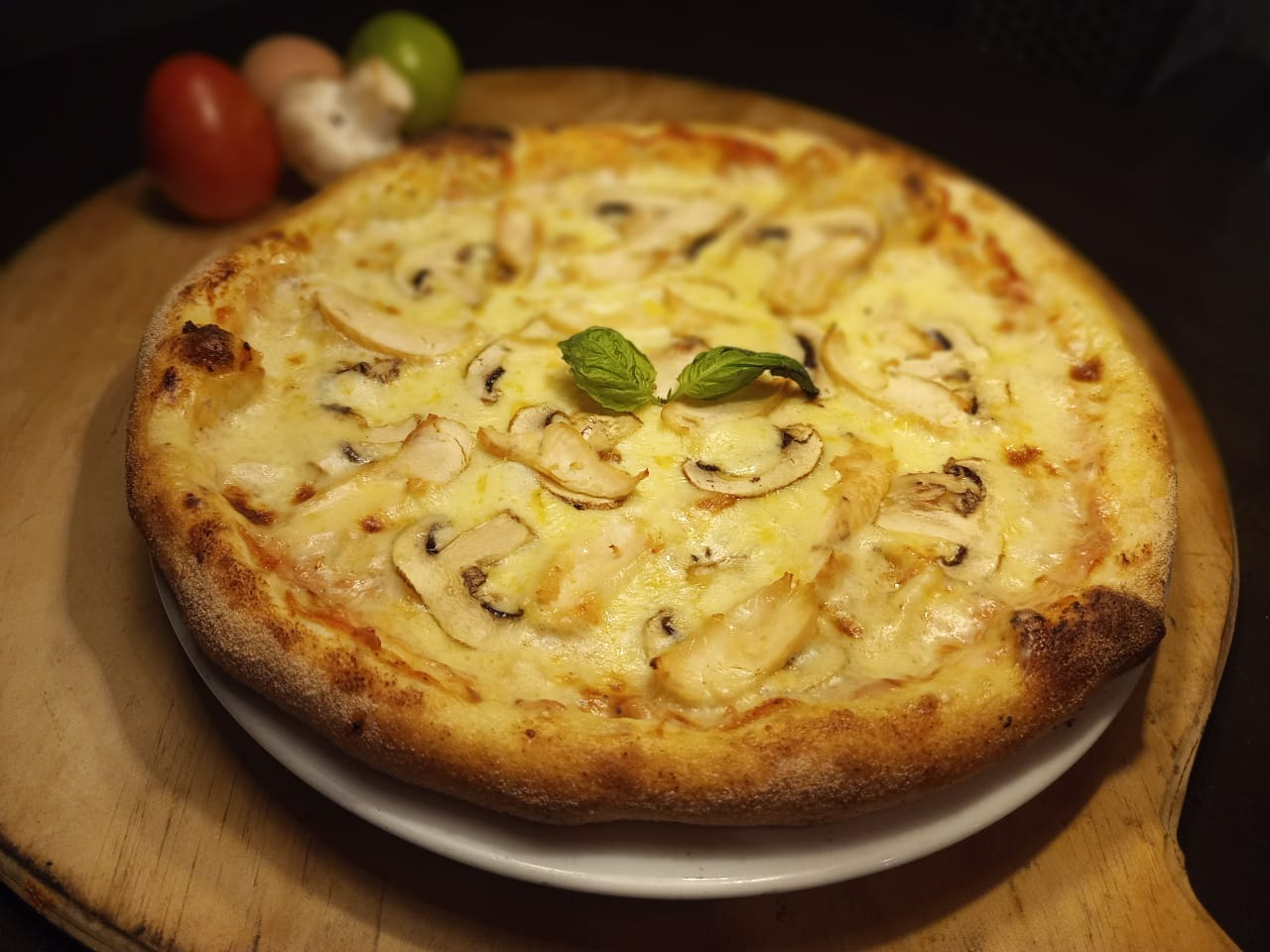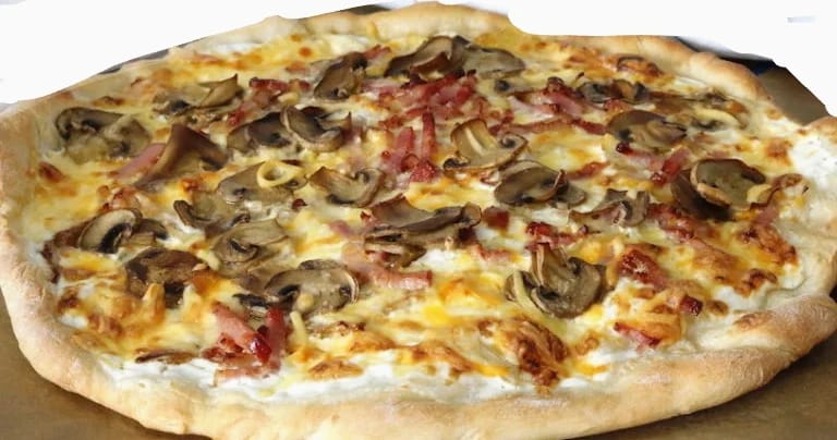 pizza mediana 8 porciones 30cm tocineta, champiñones,rica salsa de trufas, queso mozzarella.