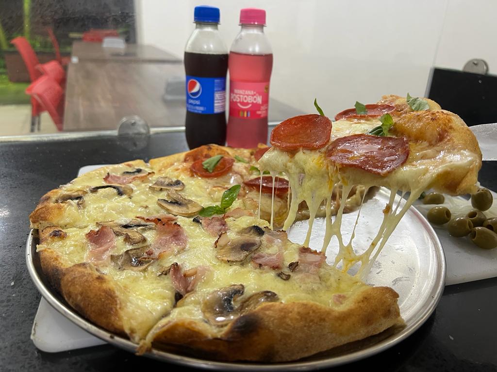 Pizza Clásica de 8 Porciones con sabor a elección🍕+ 2 gaseosas a escoger (Postobón 250 ml)