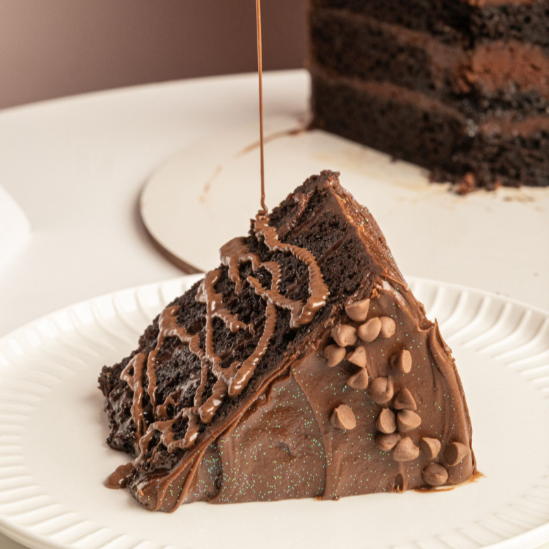 ¡Para antojos intensos! Nuestra porción de torta de triple chocolate es súper húmeda, esponjosa y cargada de cacao.
