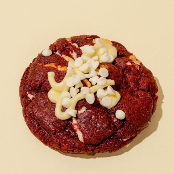 El sabor del red velvet hecho galleta: estilo New York, suave y generosamente rellena de frosting de queso crema.