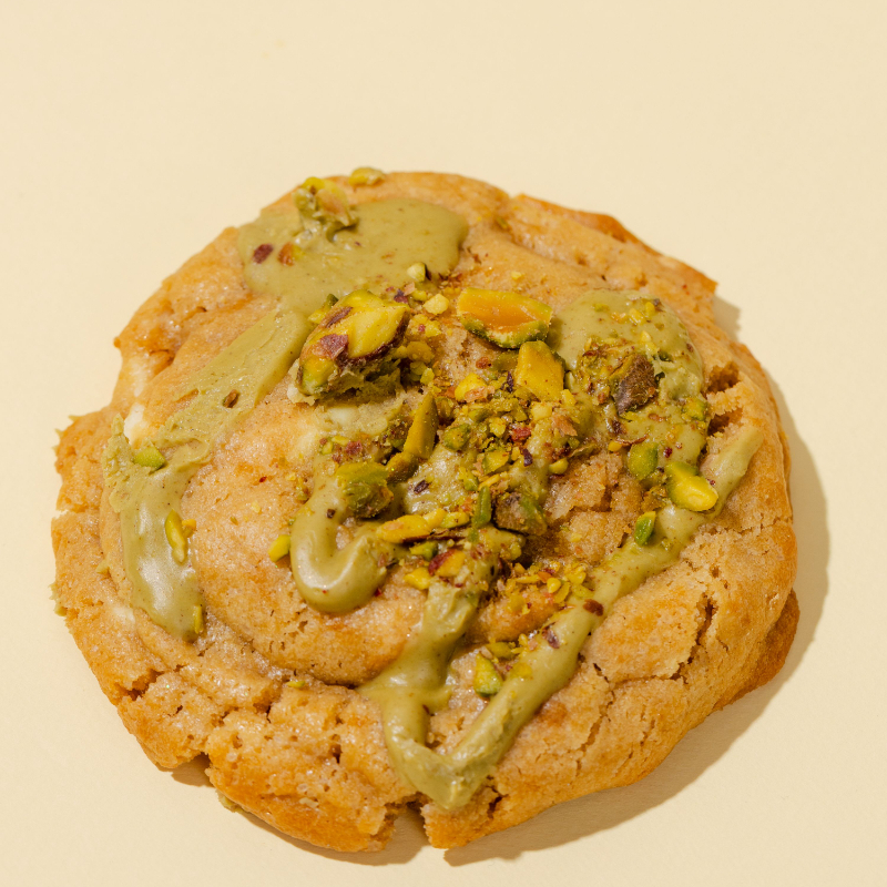 Deliciosa galleta gruesa estilo New York rellena de crema de pistacho y enriquecida con chips de chocolate mixto.