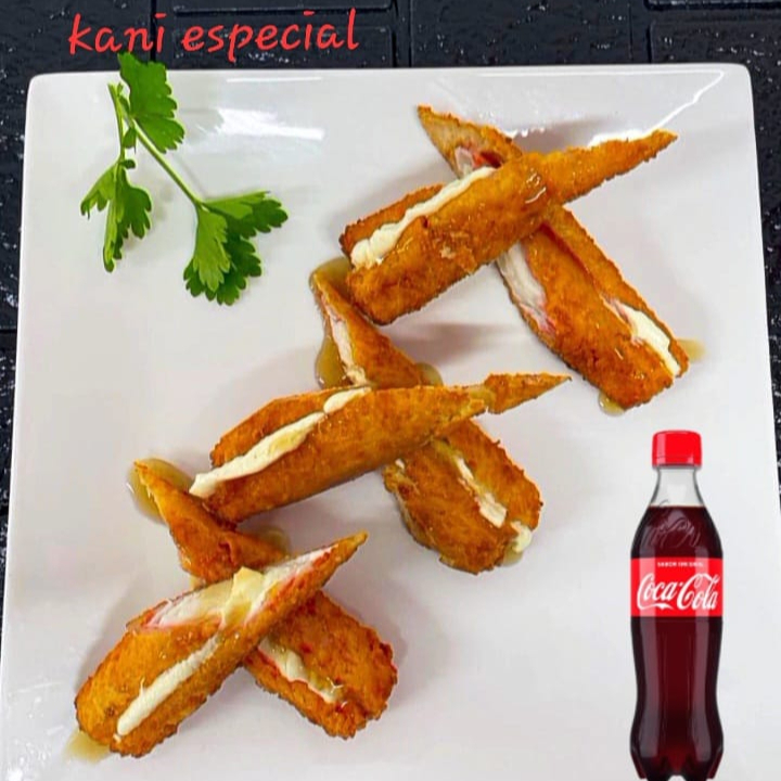 ricos palitos de cangrejo relleno de queso mozzarella ,apanados en panko bañados en salsa dulce.