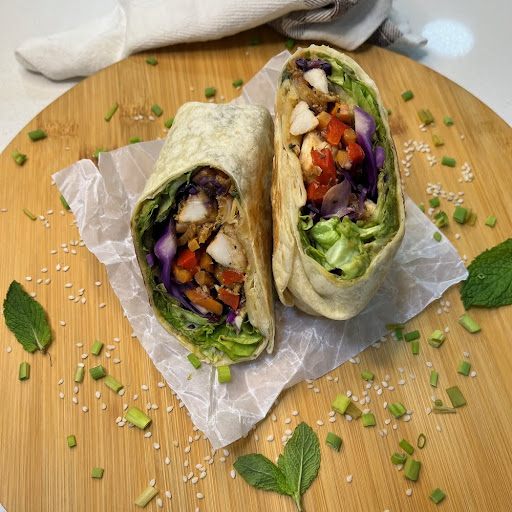 Tortilla integral (con aceite de oliva), 100 gr. Pollo, lechuga, repollo morado, zanahoria, cebolla roja, pimenton. Elige tu base preferida y acompañante. Producto artesanal, su tamaño puede variar. No contiene Queso Campesino.