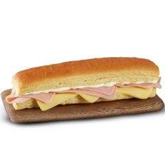Sándwich en pan artesanal relleno con Jamón y queso , salsa mayonesa