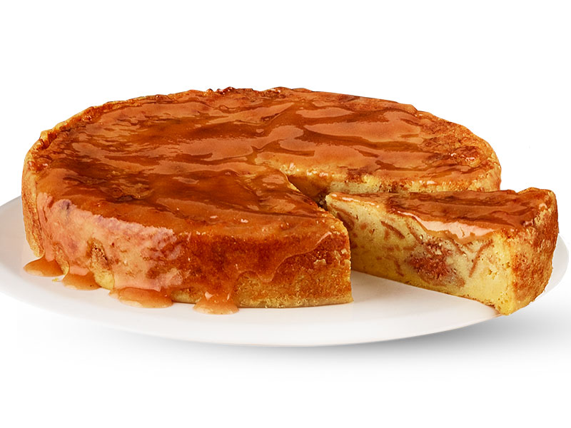Torta de almojábana con salsa y trocitos de guayaba para 12 porciones.