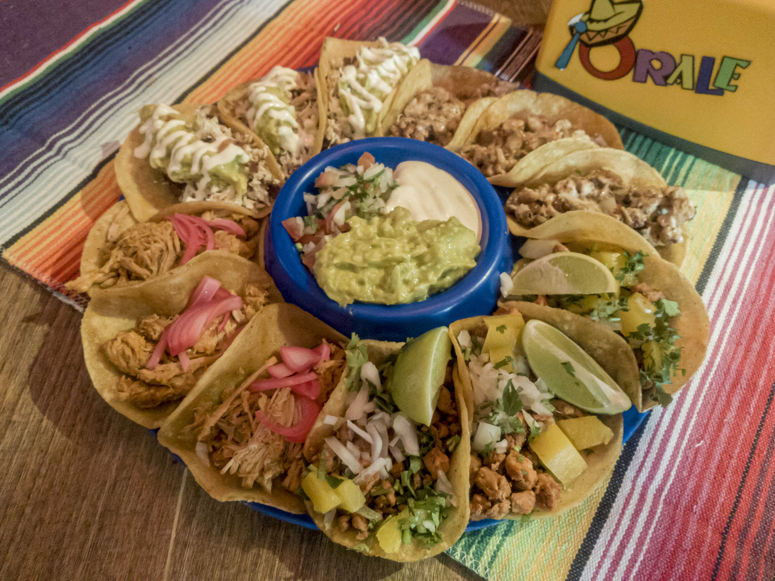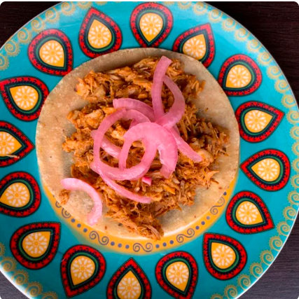 Carne de cerdo, champiñones, pimentón, cebolla, tocineta, queso y crema. Acompañadas con tres tortillas de maíz para que armes tus tacos.