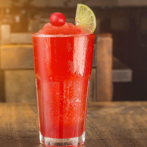 Cerveza, limón, shot de tequila y jarabe de granadina.