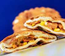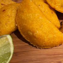 Delicioso pastel de maíz frito, relleno de pollo desmechado.