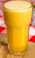 Delicioso jugo de mango bien frío en leche, en vaso de 16 onzas, la fruta es natural y fresca y es rica en vitamina A y C que ayuda al cuidado de la piel.