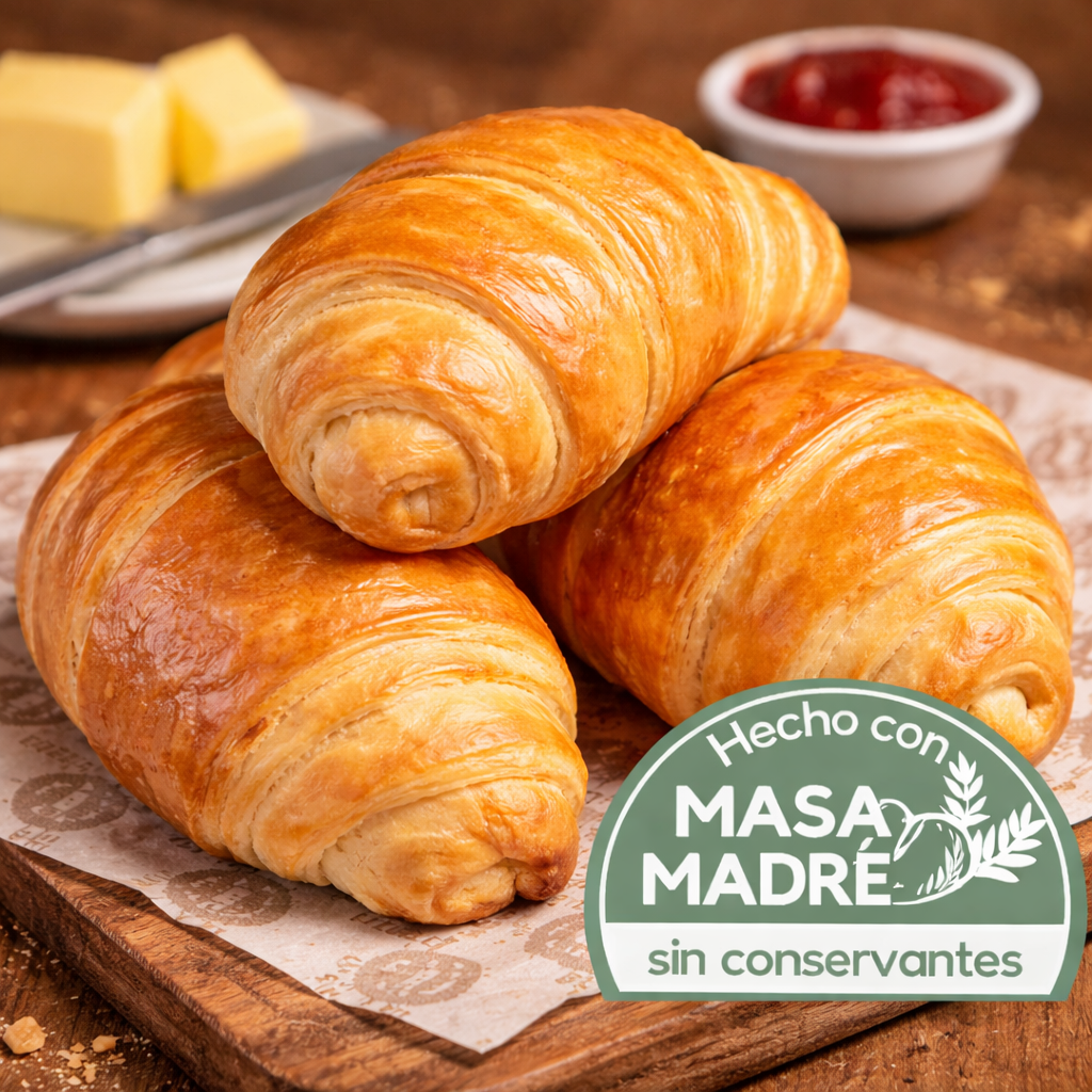 Croissant semihojaldrado con mantequilla relleno de queso.