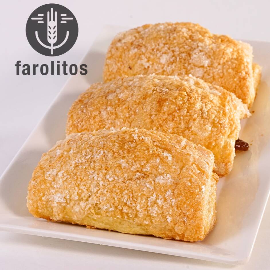 Hojaldrado tradicional (con mantequilla y leche en polvo) relleno con bocadillo artesanal.