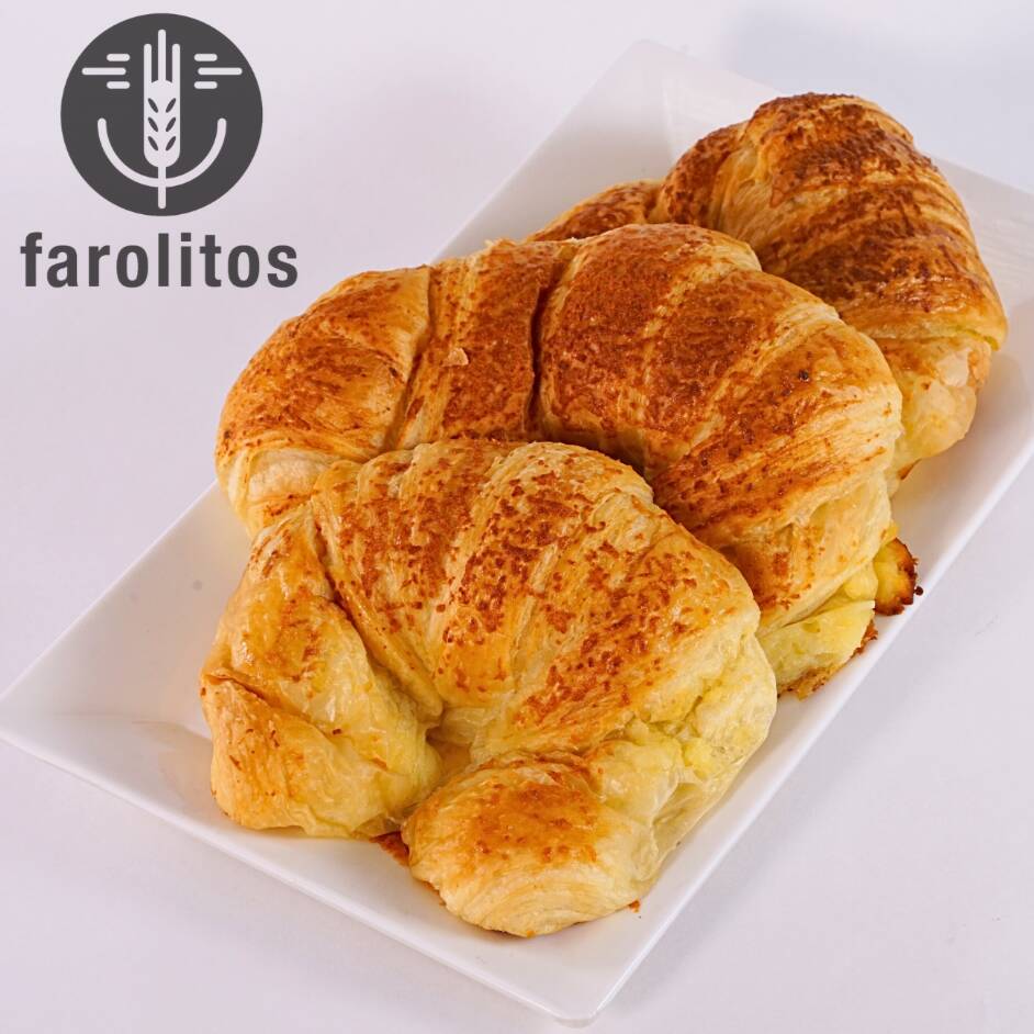Croissant semihojaldrado con mantequilla relleno de queso.