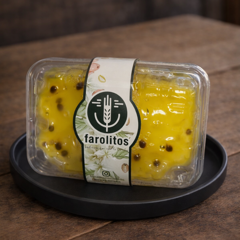 Huevos, pan de maiz, quesito y bebida (FAROLITOS)