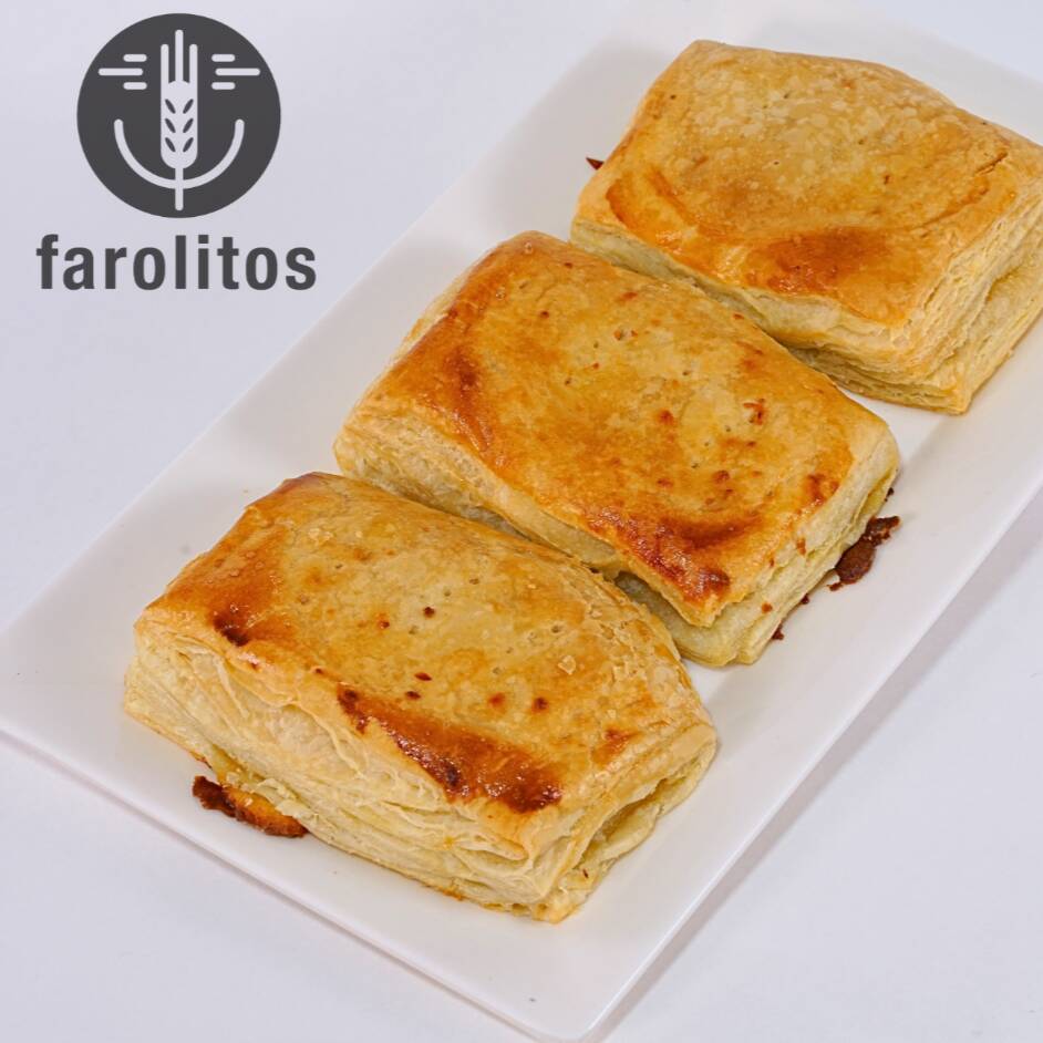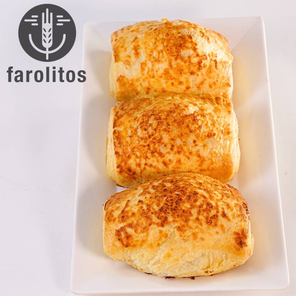 Hojaldrado tradicional (con mantequilla y leche en polvo) relleno de 3 quesos.