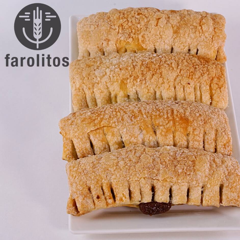 Hojaldrado tradicional (con mantequilla y leche en polvo) relleno con bocadillo artesanal.