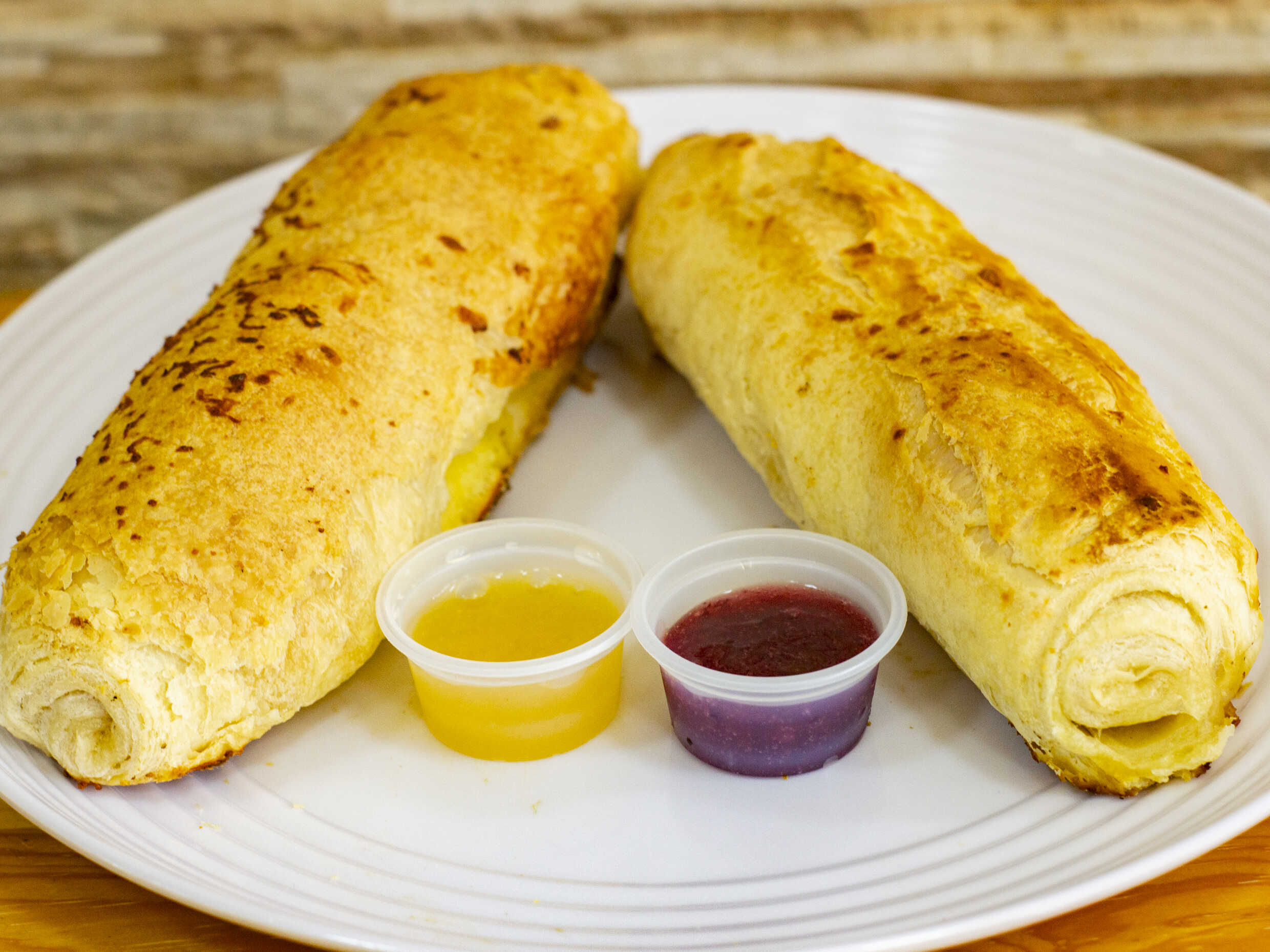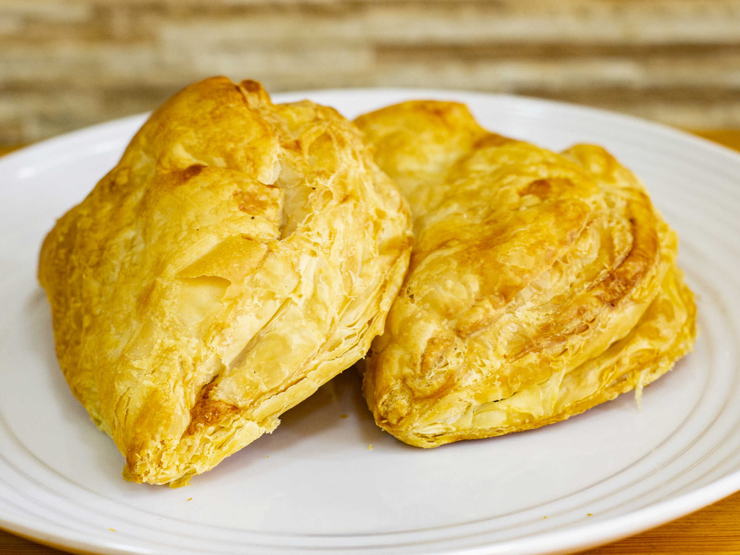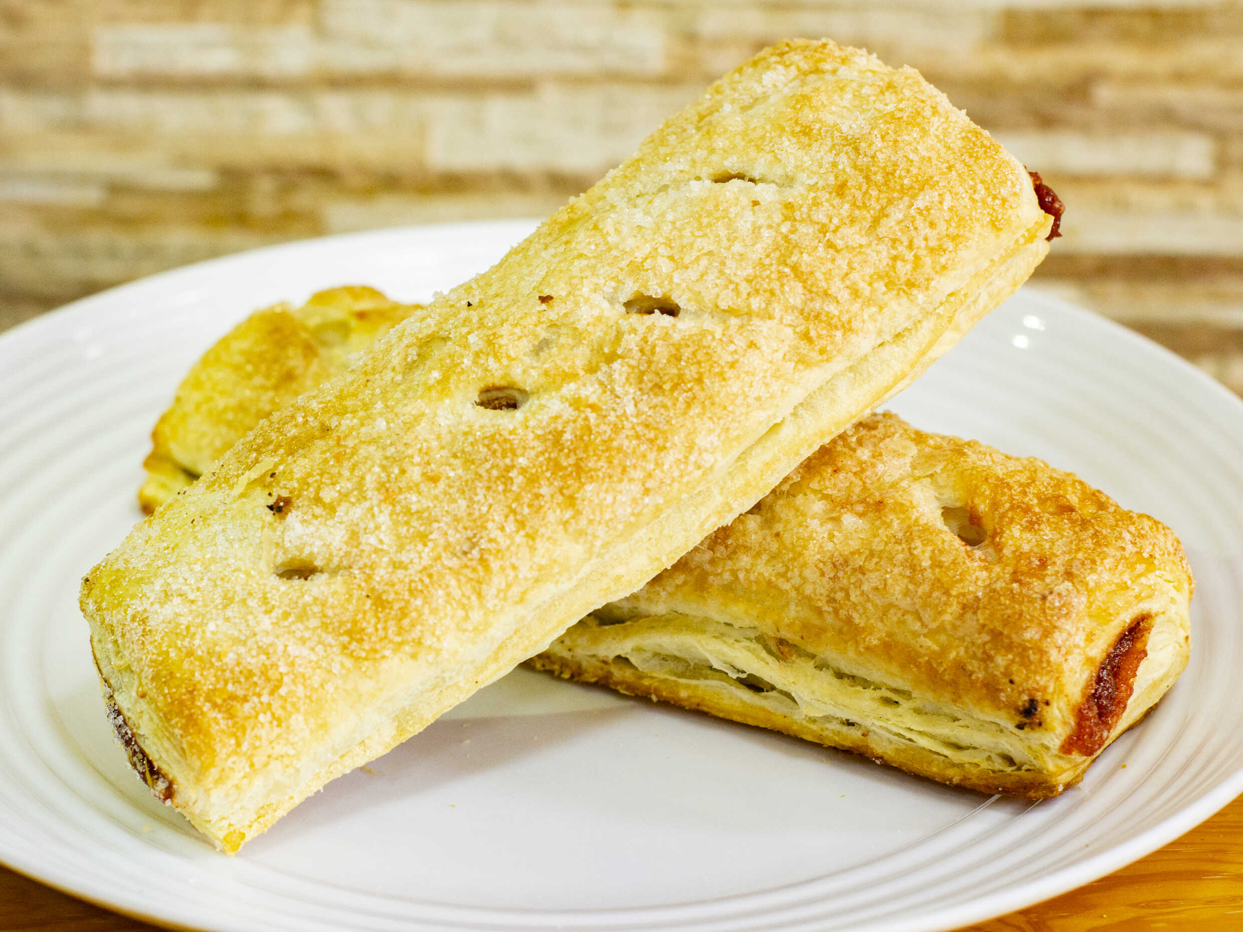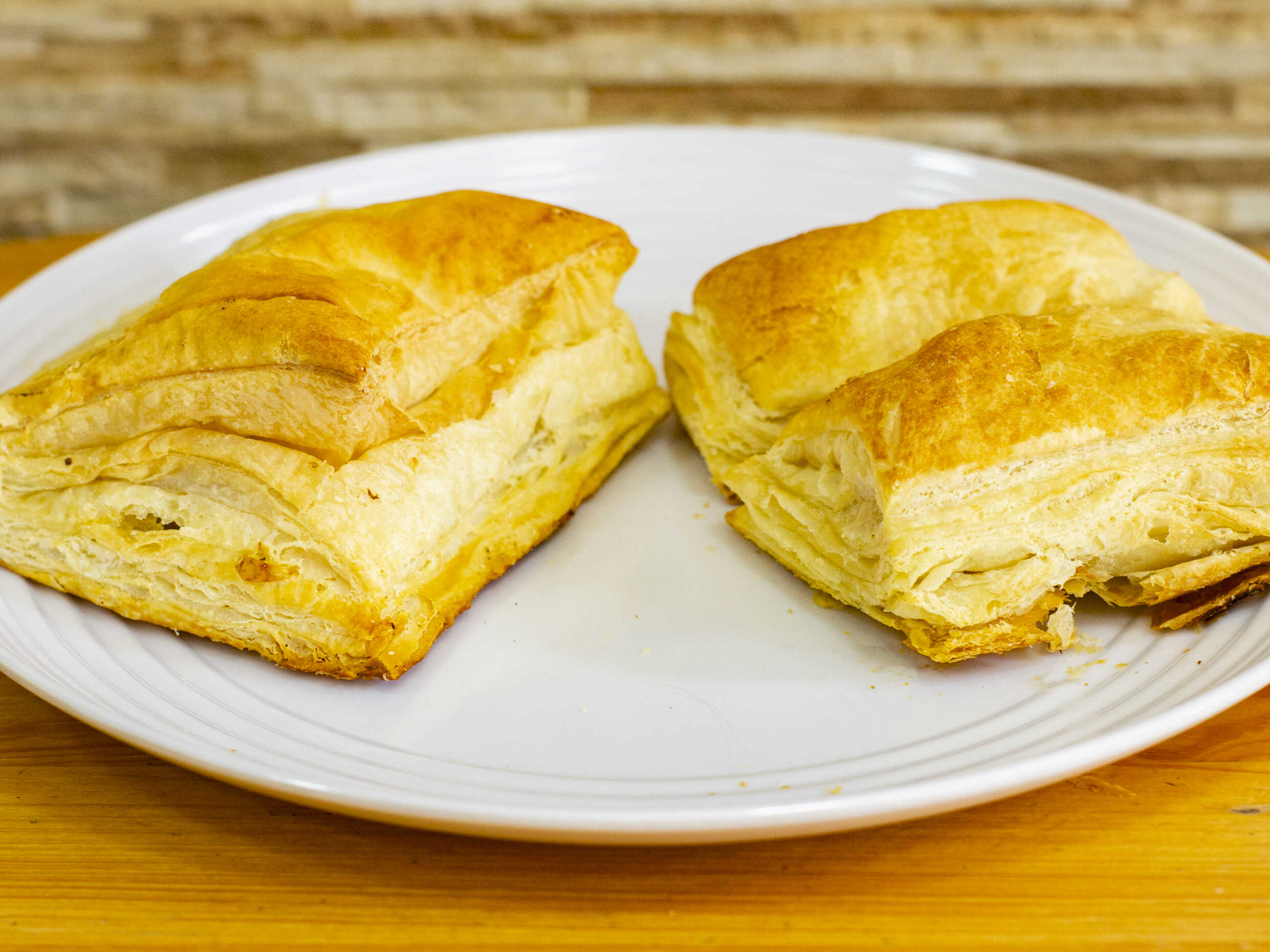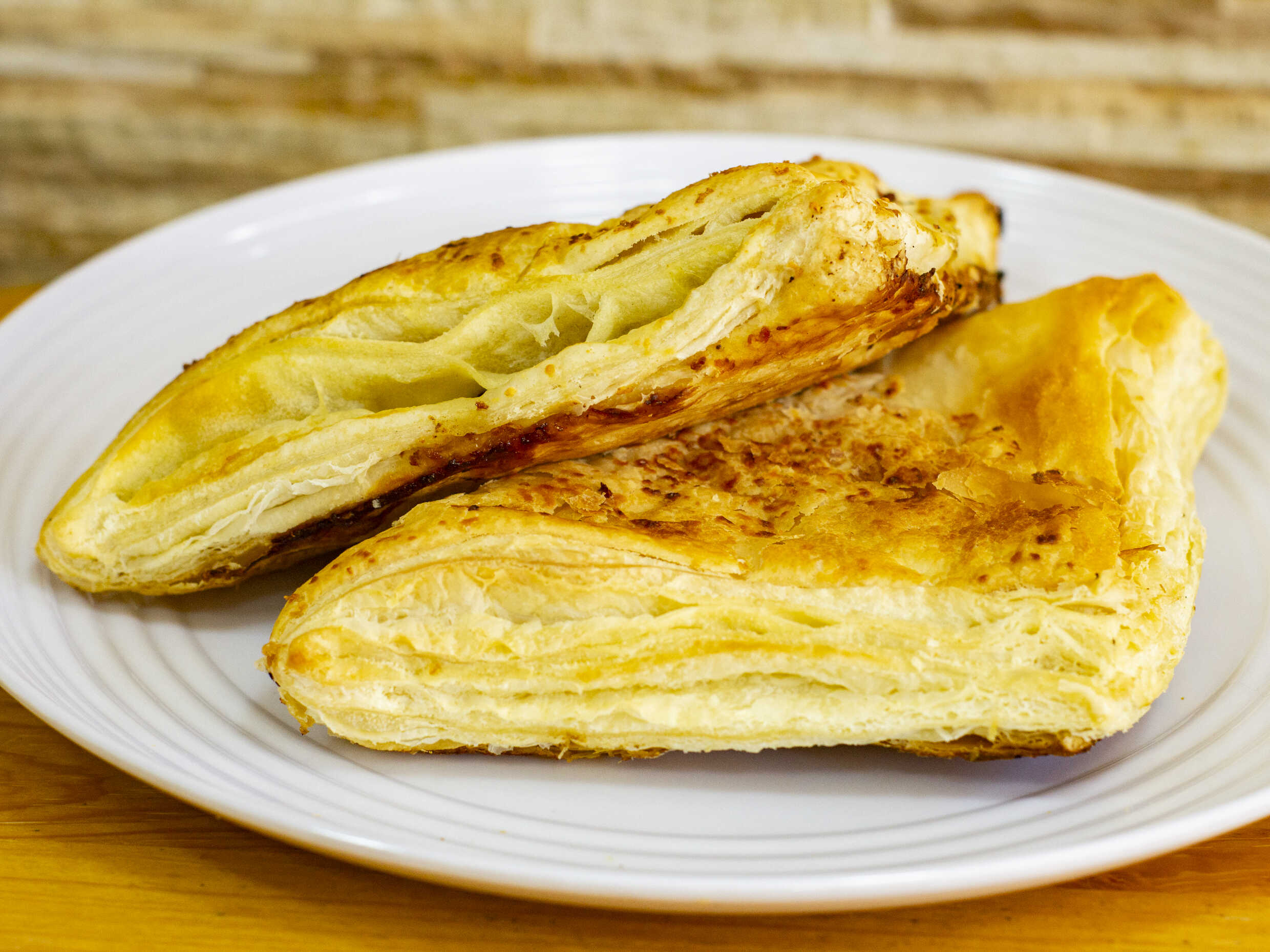 Pastel hojaldrado relleno de arequipe, queso y guayaba.