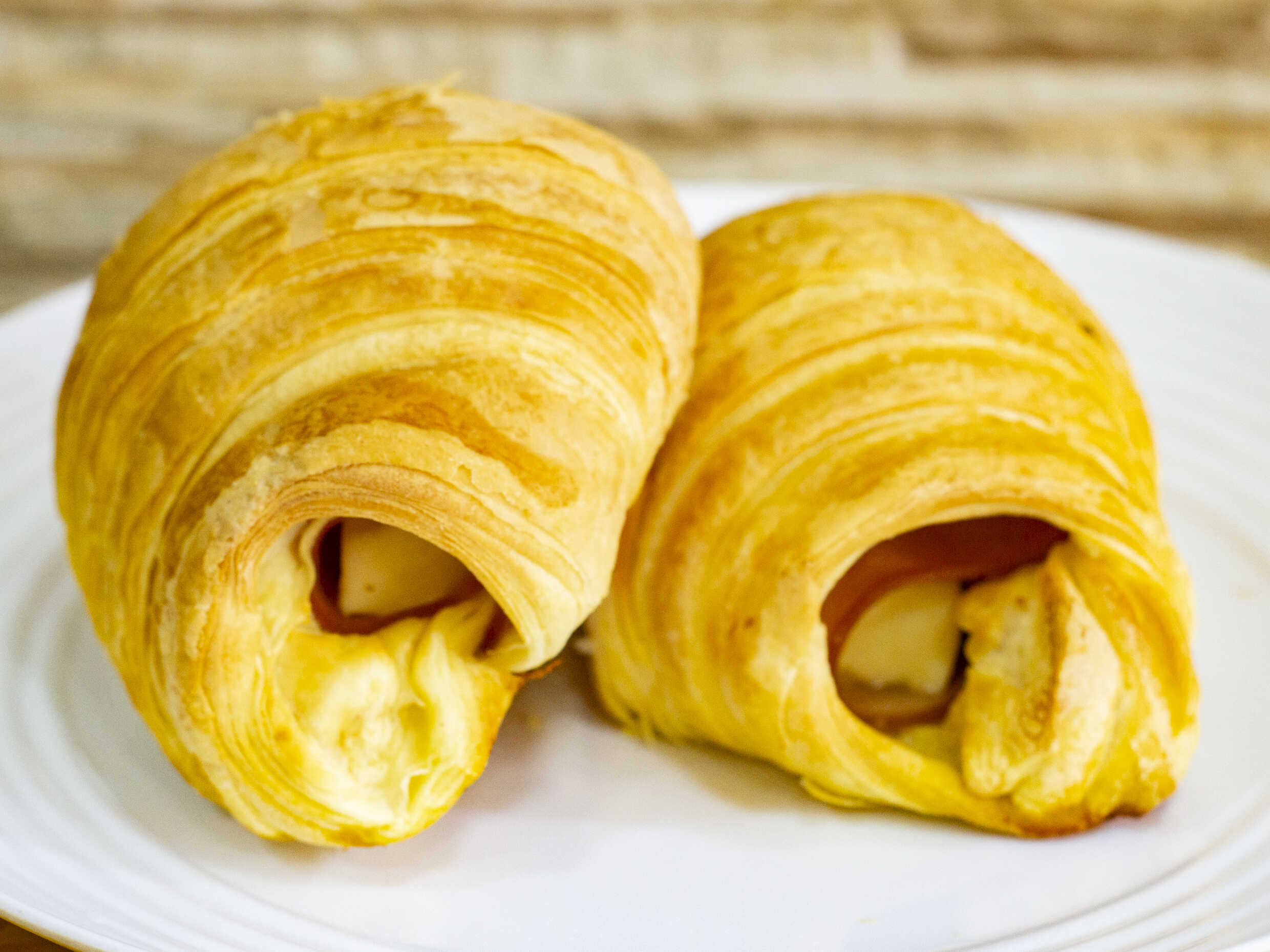 Pastel hojaldrado relleno de jamón, queso y piña.