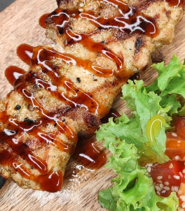 Bondiola al barril Papas artesanales 120 queso bondiola huevo de codorniz chimichurri guacamole más (Porción personal)