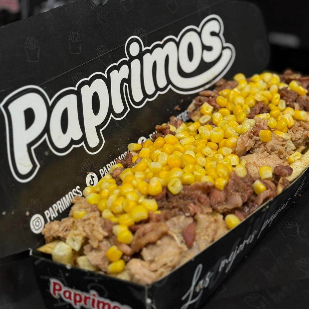 Crujientes papas, Pollo a la BBQ, Chips de tocineta, Maíz Dulce