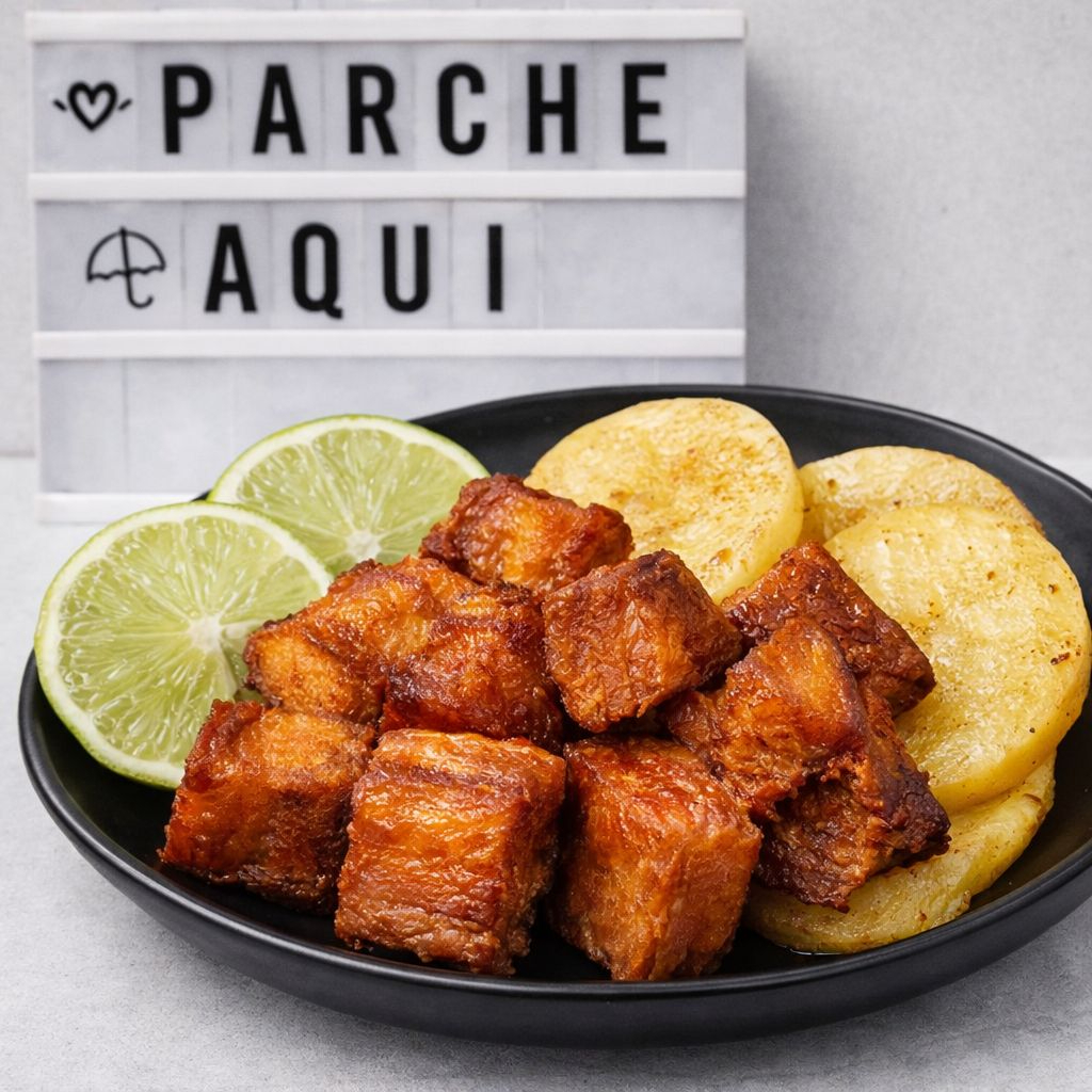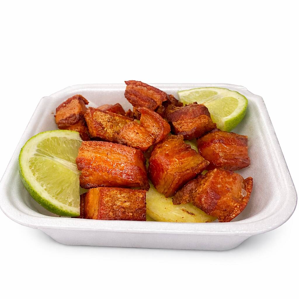 Chicharrones Ahumados 🔥🐽 200gr de chicharrón ahumado crujiente, acompañado de arepitas recién hechas y limón fresco. ¡Perfectos para picar y disfrutar con todo el sabor tradicional!"