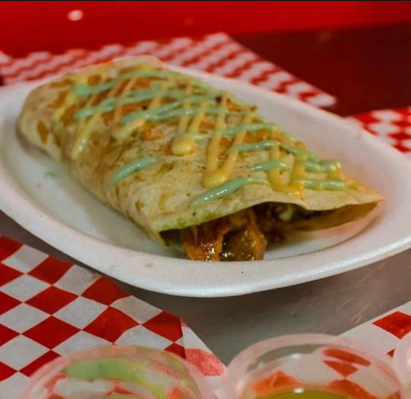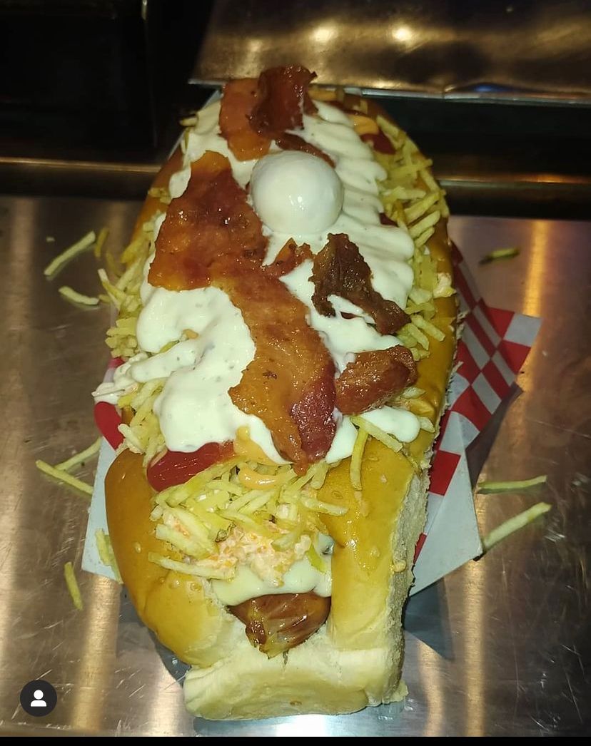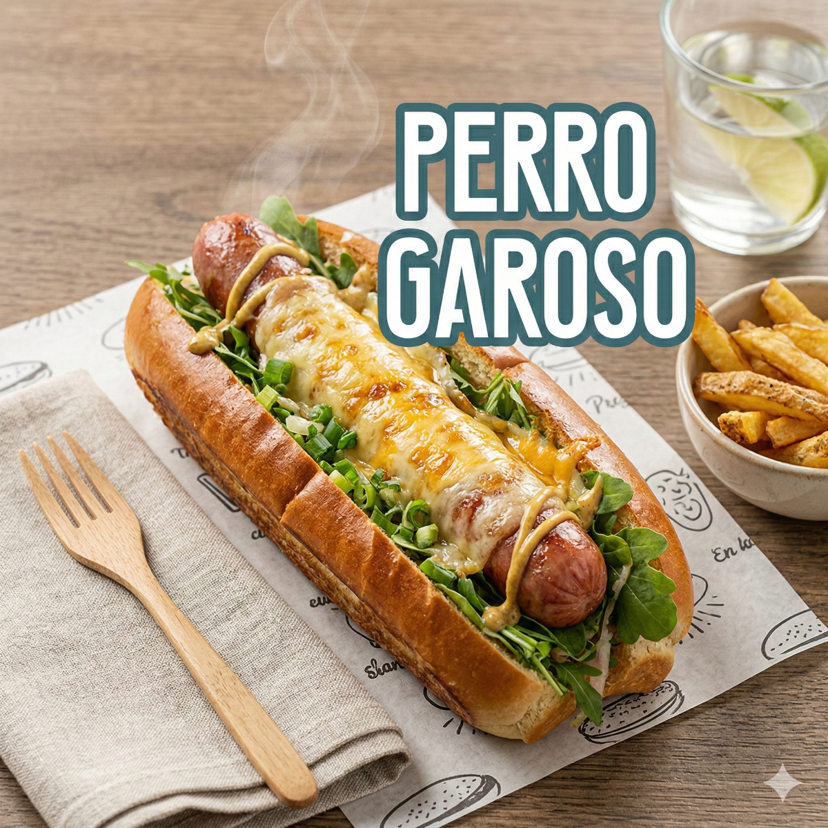 Carne de res, tocineta, lechuga, ripio de papas, Ensalada de lechuga y máximo 4 salsas, roja, rosada, mostaza, BBQ, Showy, maíz.