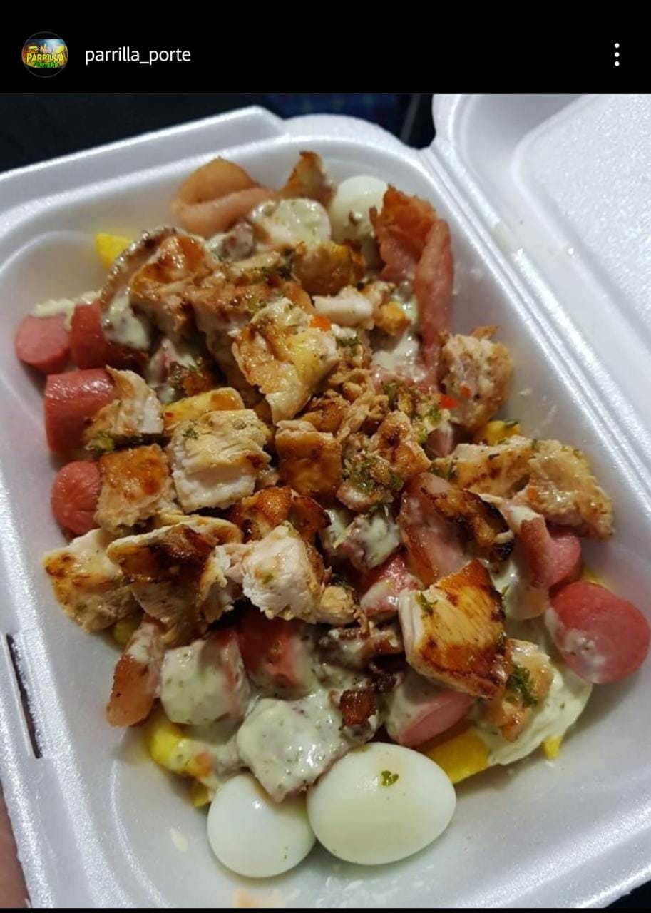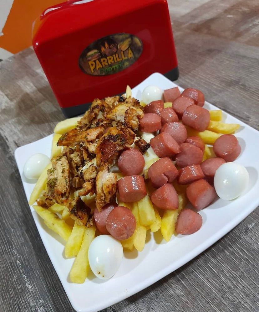 PAPAS A LA FRANCESA SALCHICHA CHORIZO POLLO CARNE PICADA AREPA CON QUESO ENSALADA MAIZ