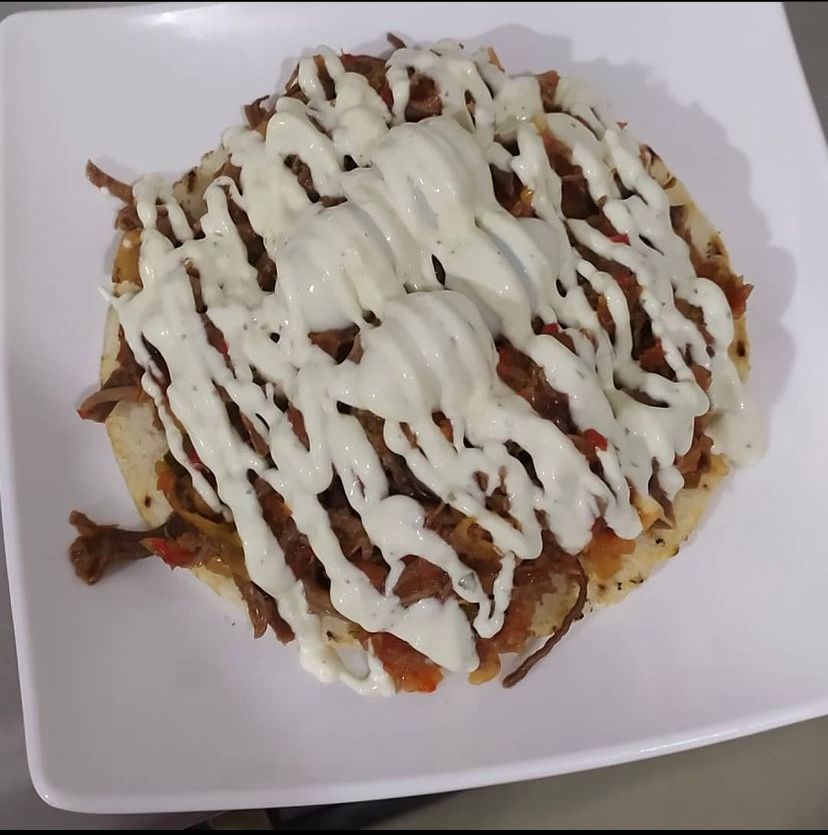TORTILLA ARINA CARNE PICADA QUESO CEBOLLA LECHUGA MAIZ
