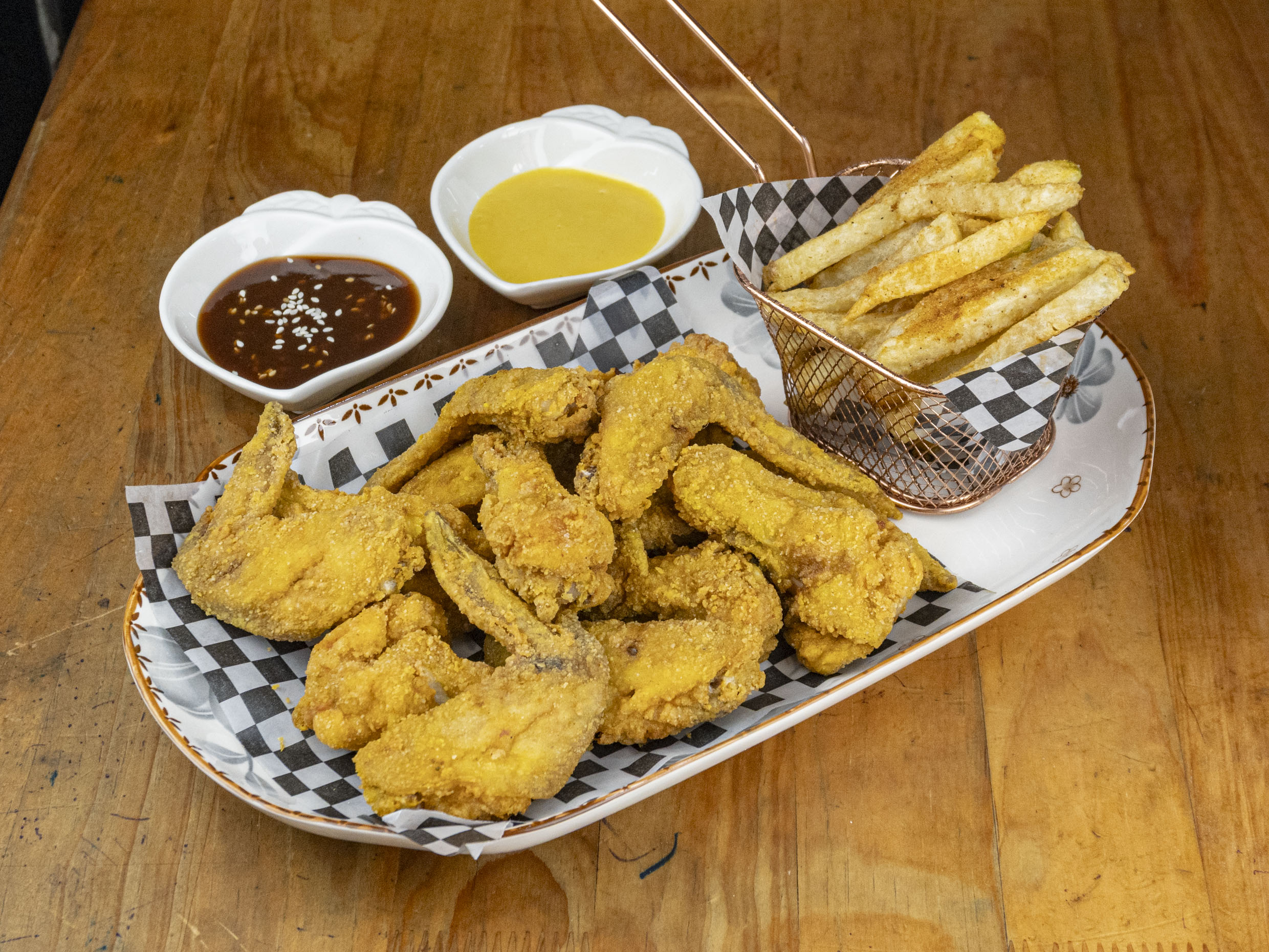 8 alitas, porcion de papas 120 gr + gaseosa postobon 250 ml GRATIS