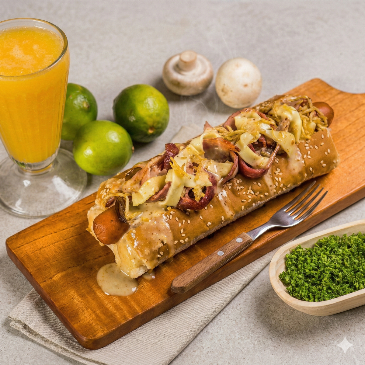 pan salchicha pollo ensalada ripio queso tocineta maicitos