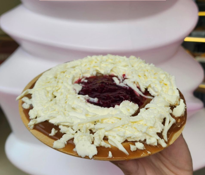 Oblea extra-rellena con arequipe, frutos rojos y queso crema de la casa, ¡la opción más generosa y deliciosa!